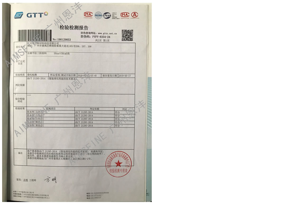 亲水易去污检测报告